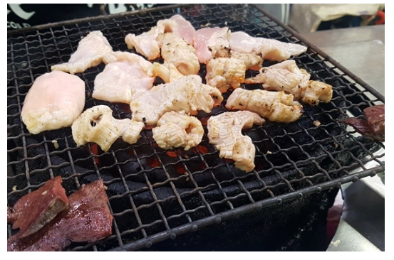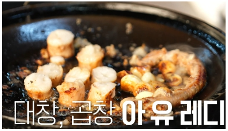 - 주문 즉시 불판 위로 올려지는 곱창, 대창, 막창