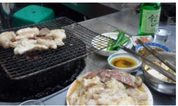 그곳에서 만나는 양곱창집들은 모두 연탄불 직화 방식만을 고수합니다.