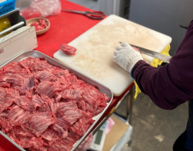 매일 ‘짝 단위’로 한우를 손질해 신선함을 극대화하고, 식당에 나가는 모든 고기는 당일 작업한 것만 사용됩니다.