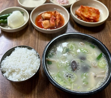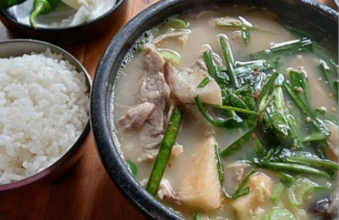 이곳은 매일 새벽 3시부터 장작불 가마솥에 국물을 푹 고아 정성껏 끓여낸 돼지사골 베이스의 모듬국밥을 제공합니다.